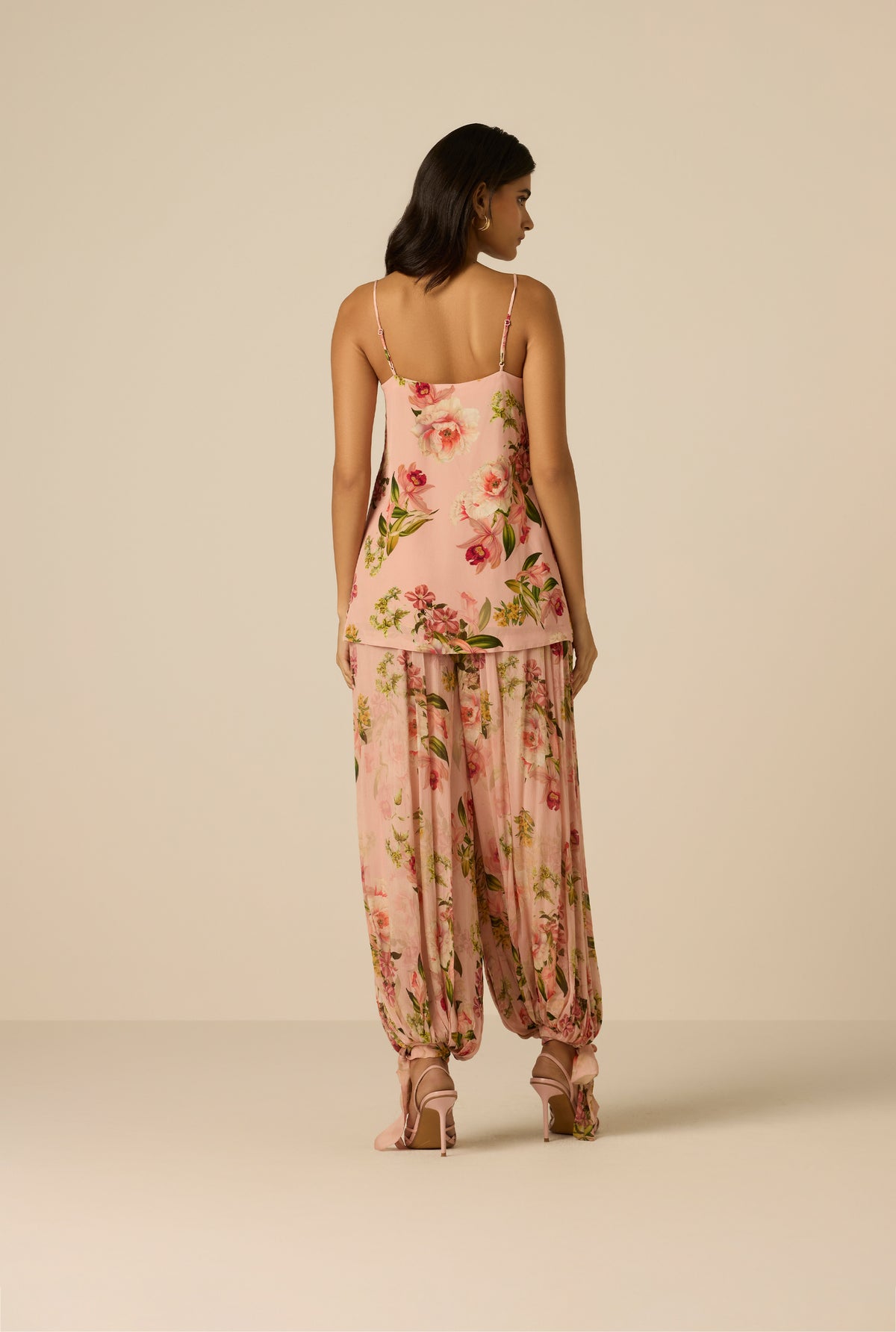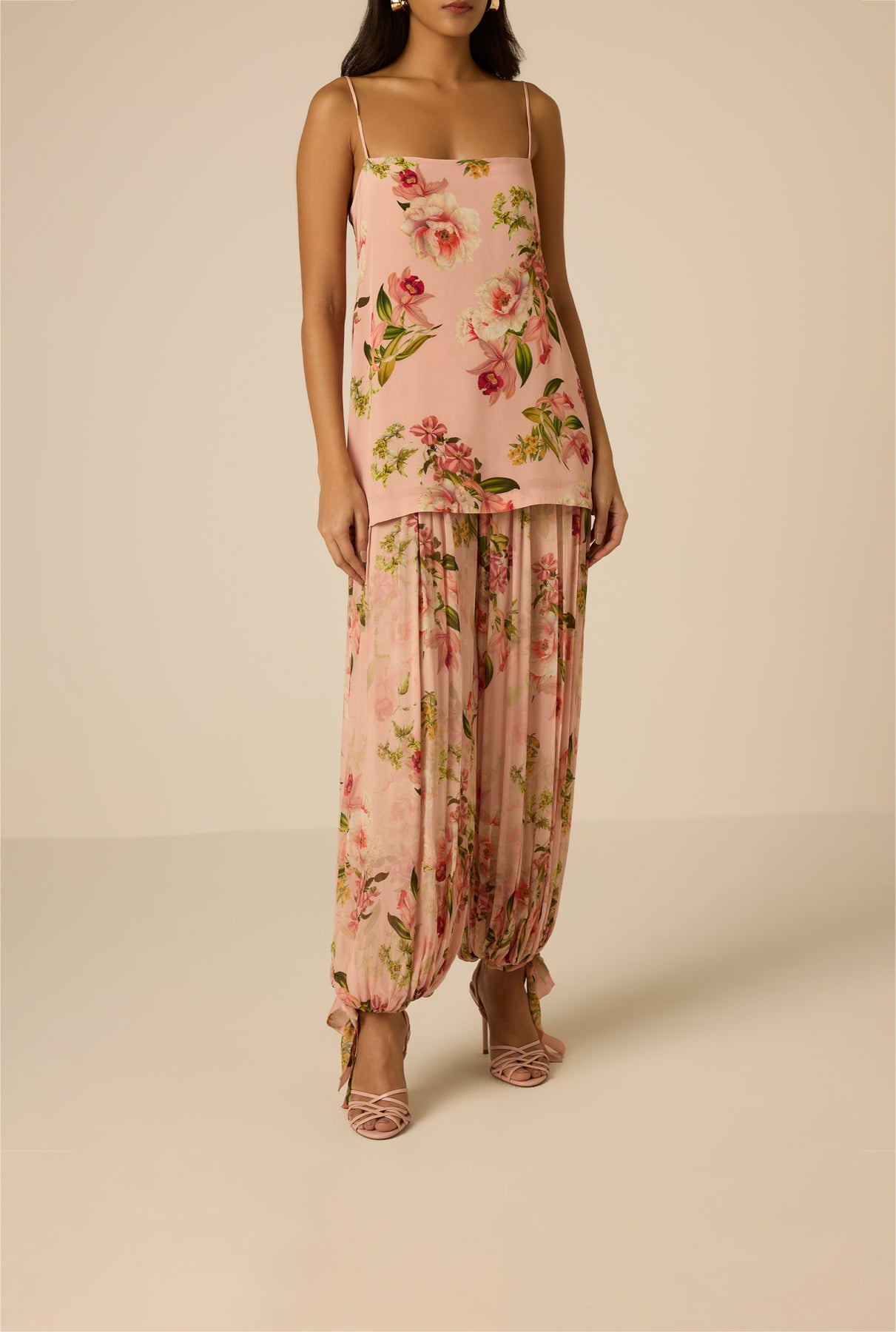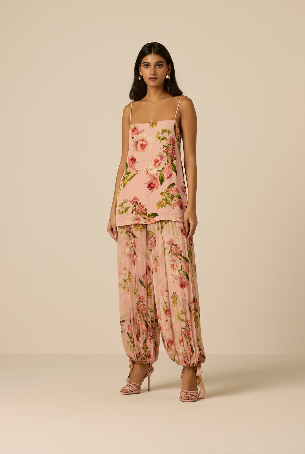 Playful florals and fluid movement define the Ayla Harem Pants from the Spring ’26 Collection. Crafted in peach viscose crinkle chiffon with a floral print, the relaxed mid-waist silhouette is designed in an easy slip-on style for ease of wear. Fully lined for comfort and coverage, the airy texture and soft drape enhance their free-spirited yet polished feel.