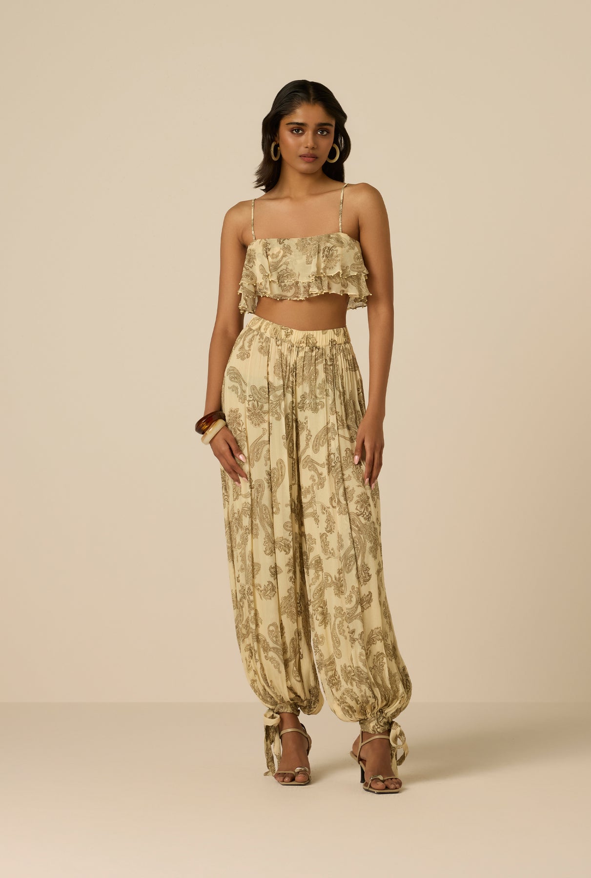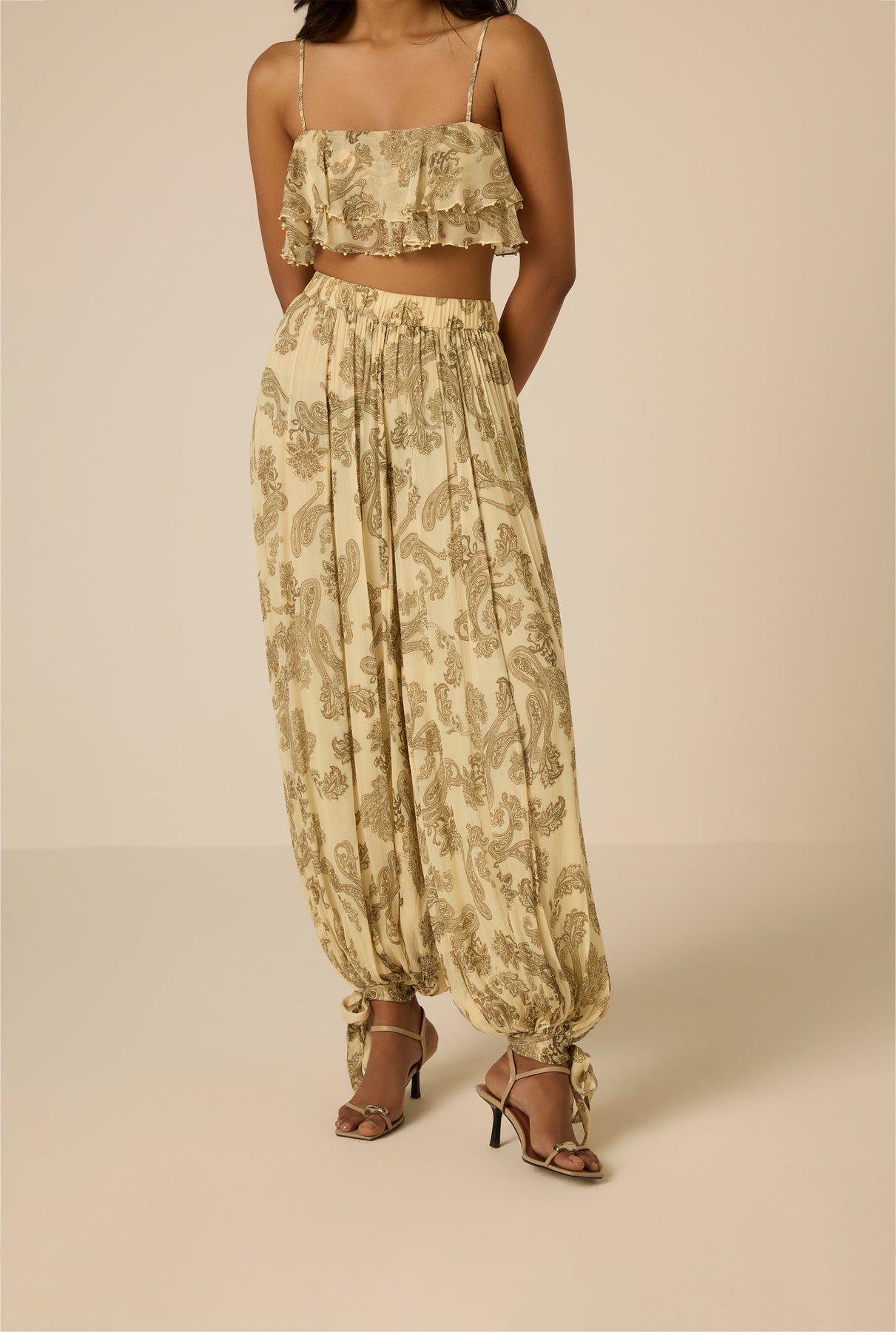 Easy yet refined, the Dani Harem Pants pair beautifully with the Dani Ruffle Top for a coordinated spring look. They bring a romantic, relaxed energy to beachside plans, lounging on vacay or for that striking day-to-evening look.