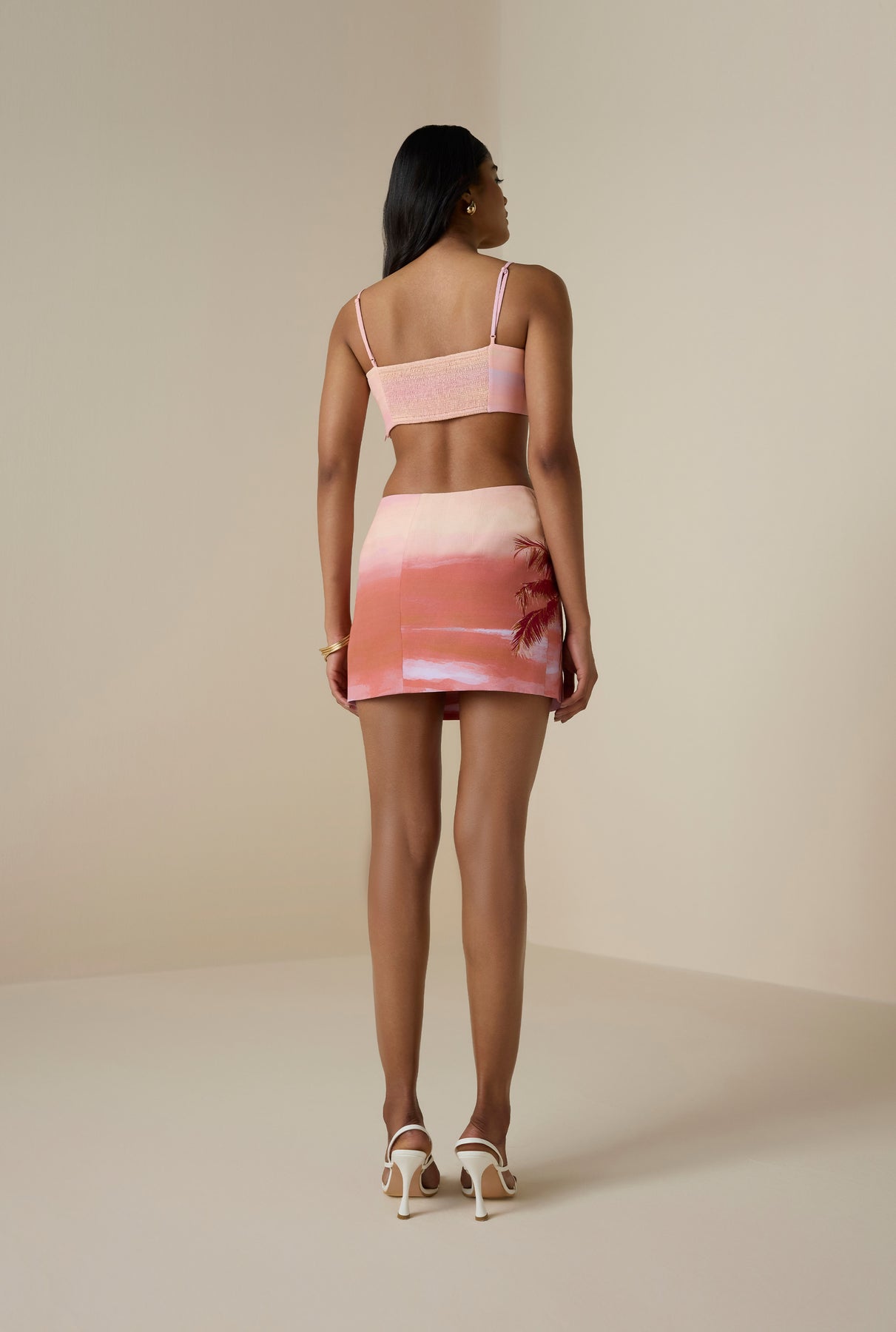 The Asma Bandeau from the Resort ’26 collection brings a vibrant, sun-ready charm to contemporary resort dressing. Crafted in coral viscose heavy crepe and detailed with a subtle tropical ombre print, it features a fitted, fully lined silhouette with a square neckline and fine straps. Smocking at the back and a side zipper closure ensure ease and comfort. Perfect for pairing with the Asma Mini Skirt for a coastal-inspired look.
